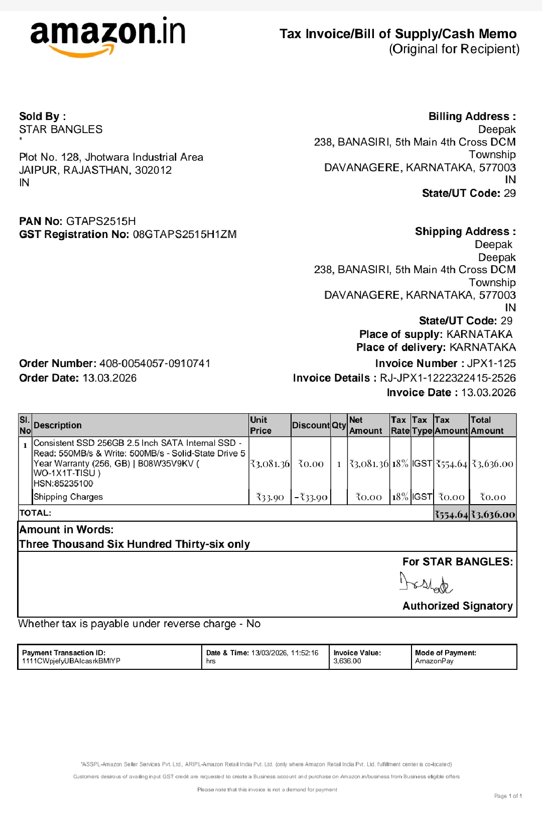 4/4/2026 2:25 PM 337568 d1F5TnB4ckRWazlib3JiczZRMlZGUT09_seller_tax_invoice_44202622543PM.pdf