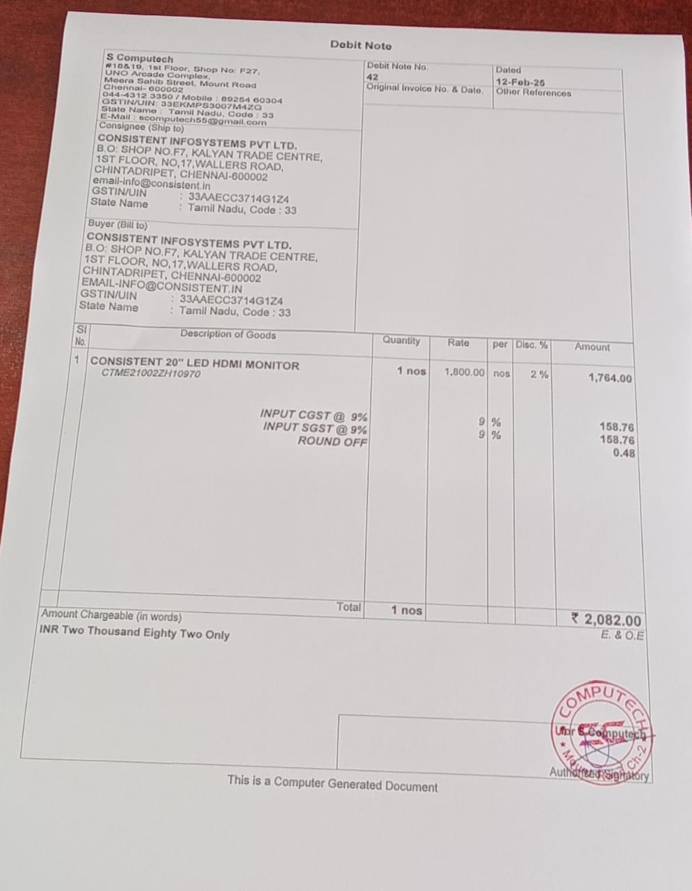 1/29/2025 1:28 PM 47771 15.4'' MONITOR DEBIT NOTE CONSISTENT_129202512859PM.pdf
